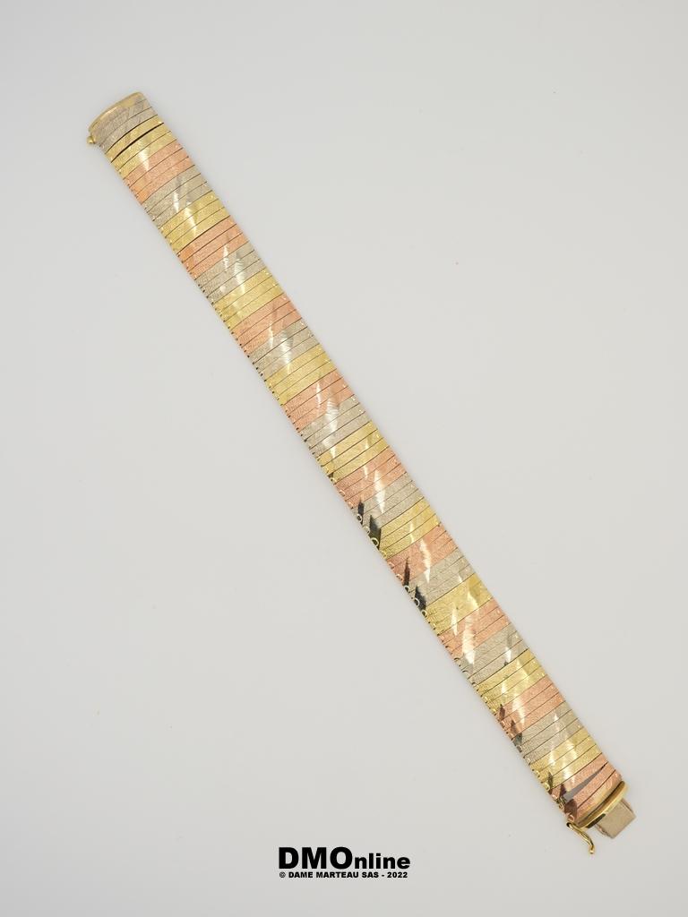 Bracelet articulé trois ors 14k. Poids : 21,39 gr