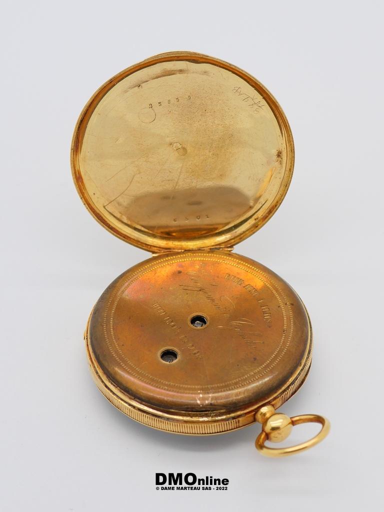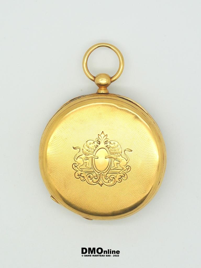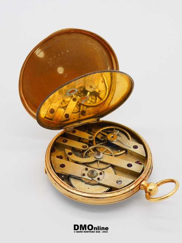 Montre gousset en or à un clapet en or 18 k. Diamètre : 4 cm. Poids brut : 56 gr