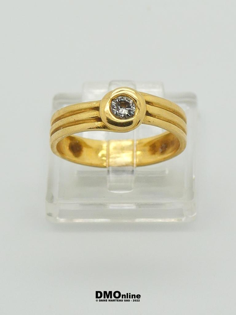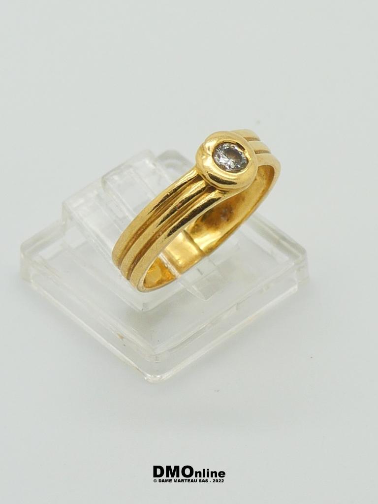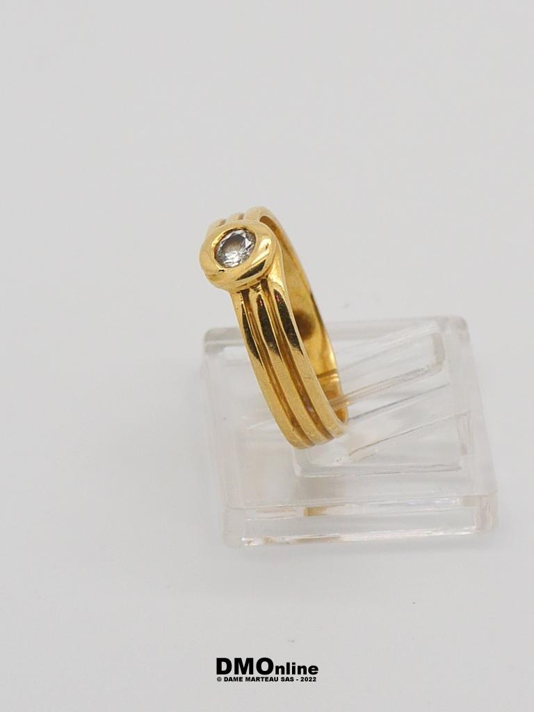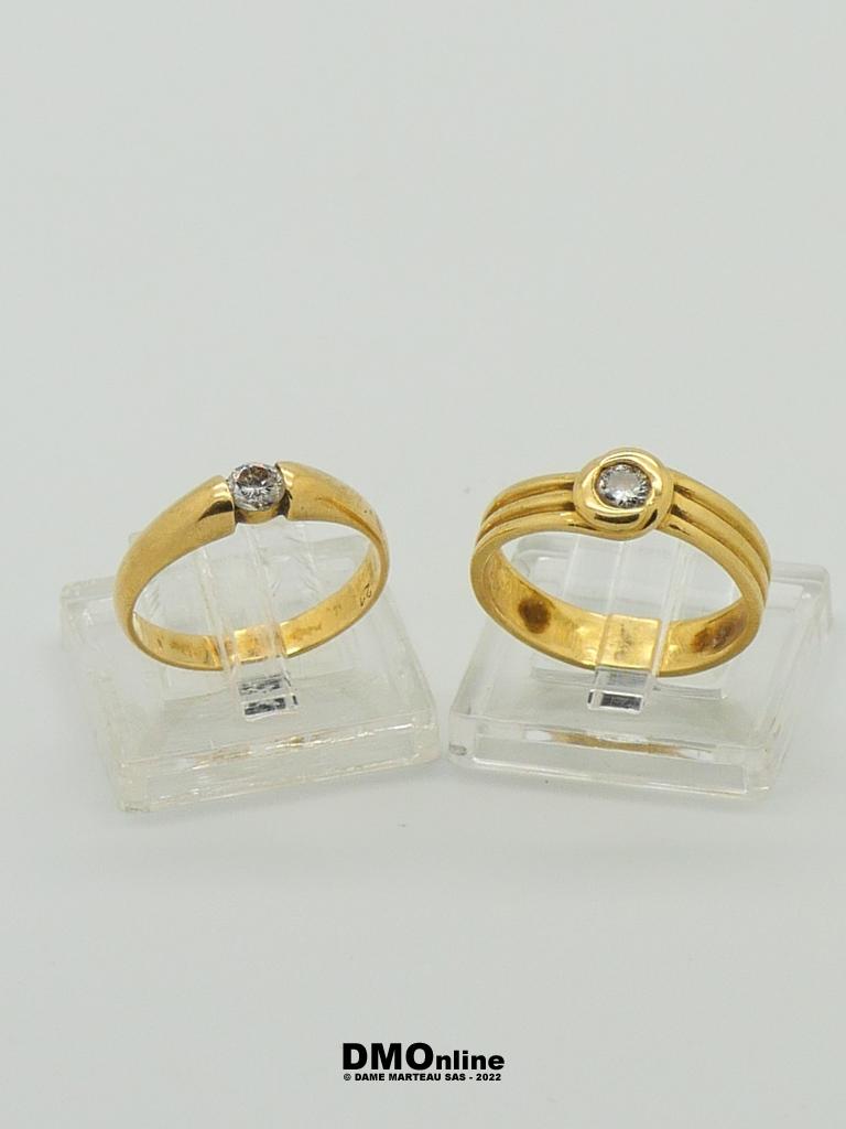 Deux bagues en or jaune 18k ornées de pierres blanches. Poids total brut : 6,15 gr