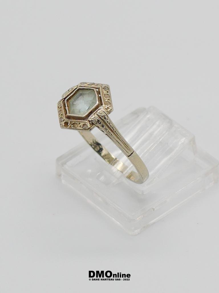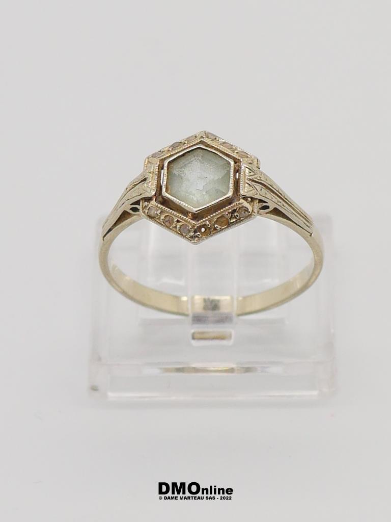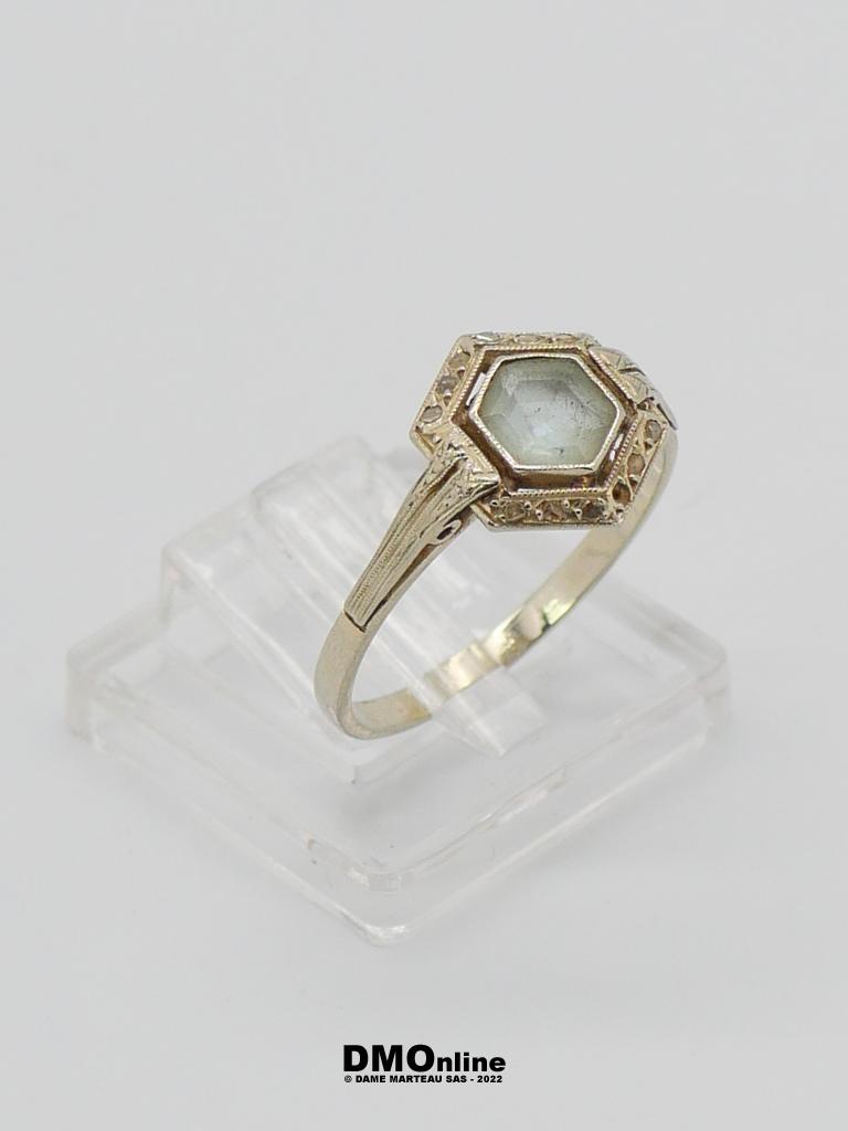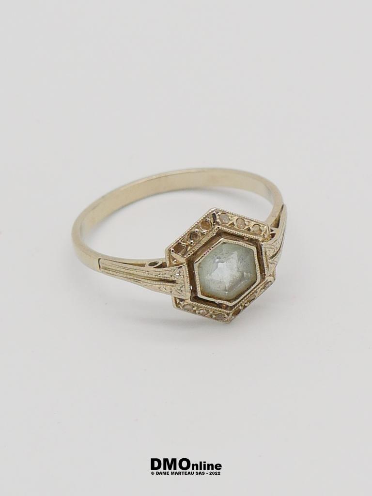 Bague ancienne en or blanc 18k et platine ornée d’une pierre. TDD : 55. Poids brut : 2,12 gr