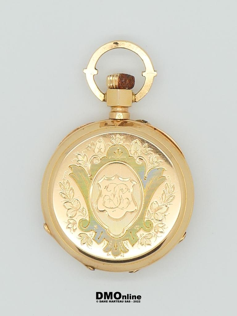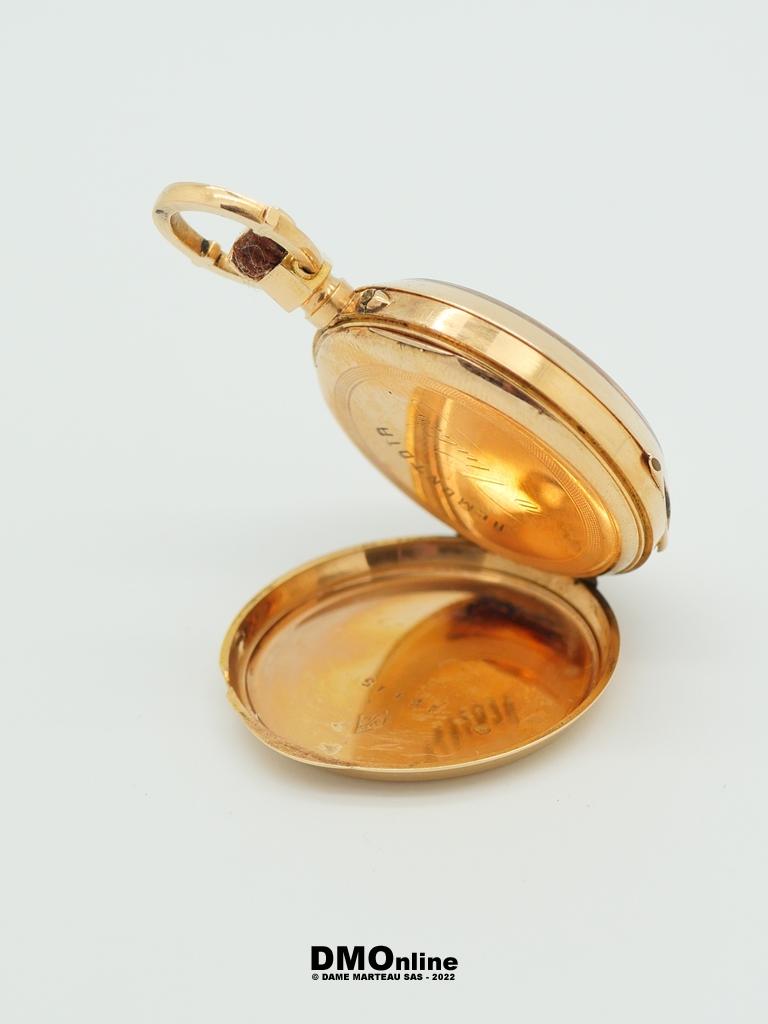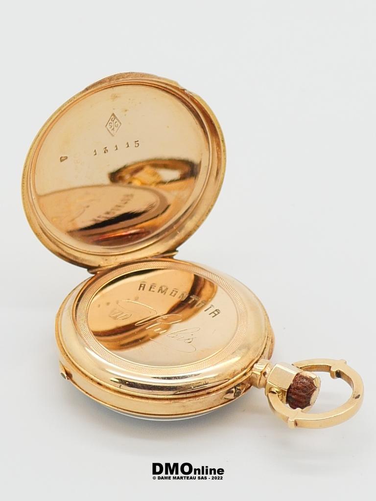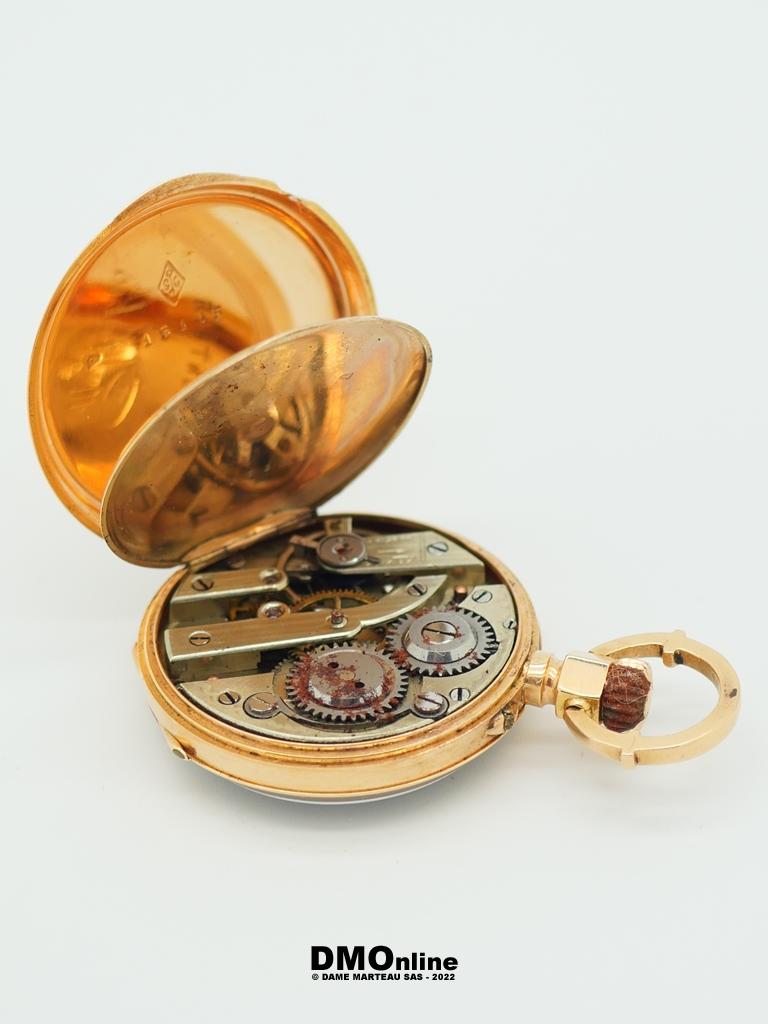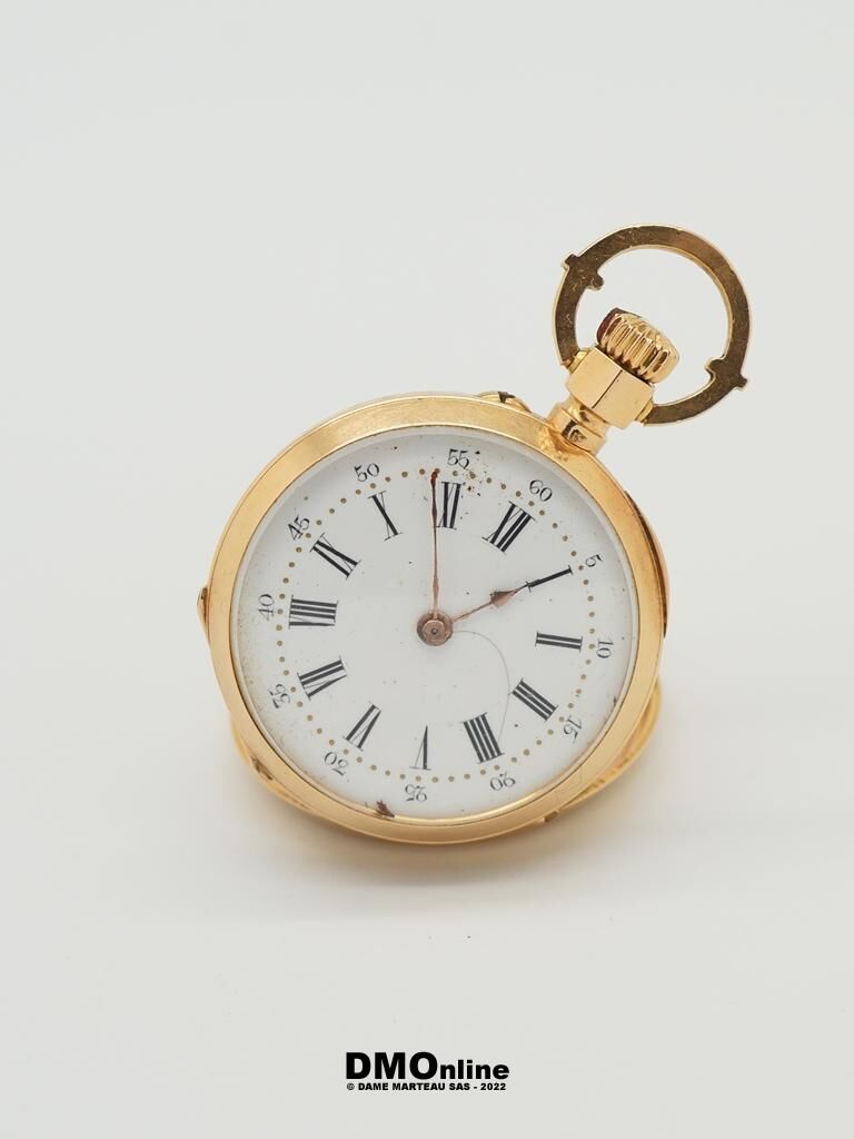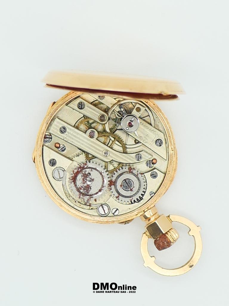 Montre de col ancienne en or jaune 18k à double clapet en or. Diamètre du cadran : 3 cm. Poids brut : 22,36 gr