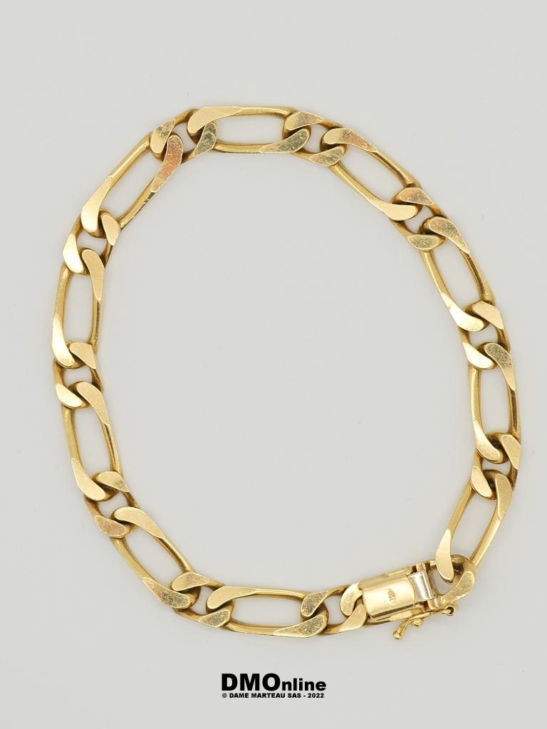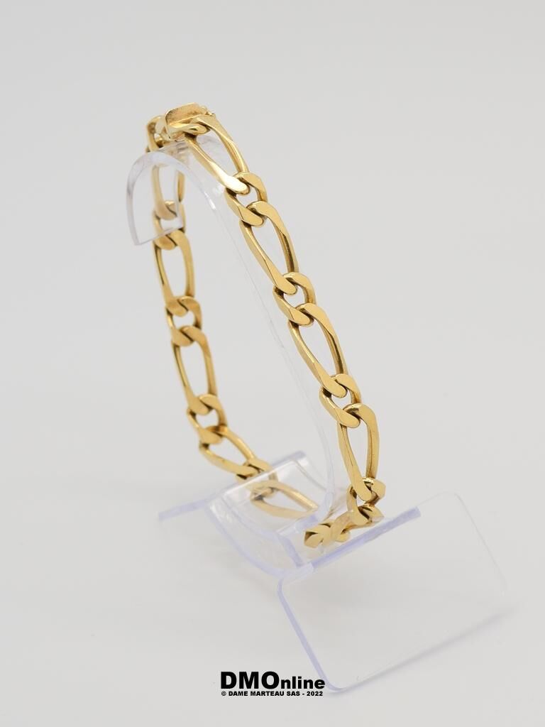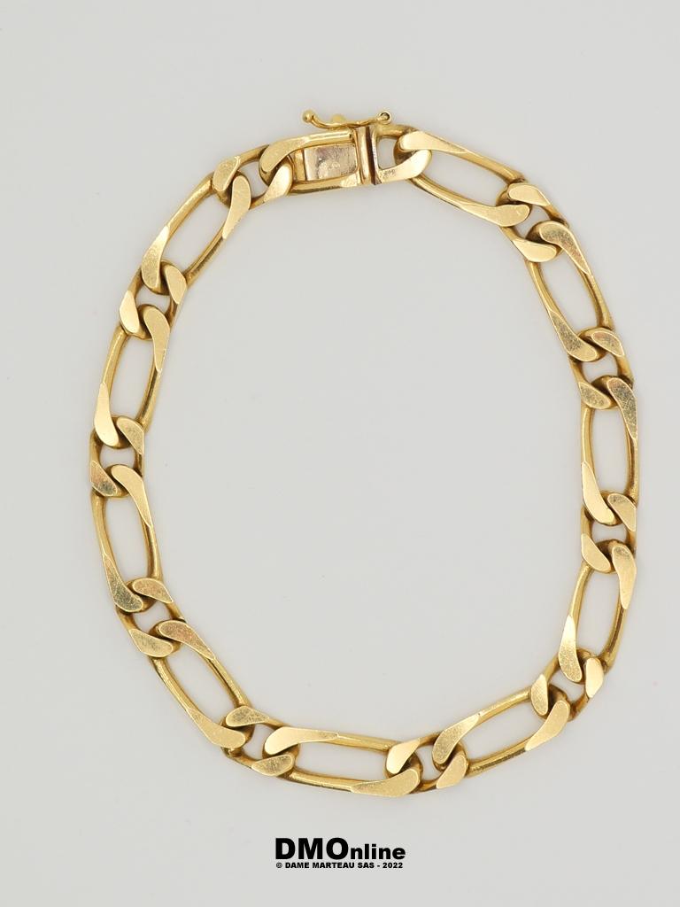 Bracelet en or jaune 18k maille figaro. Longueur : 21 cm. Poids : 26,14