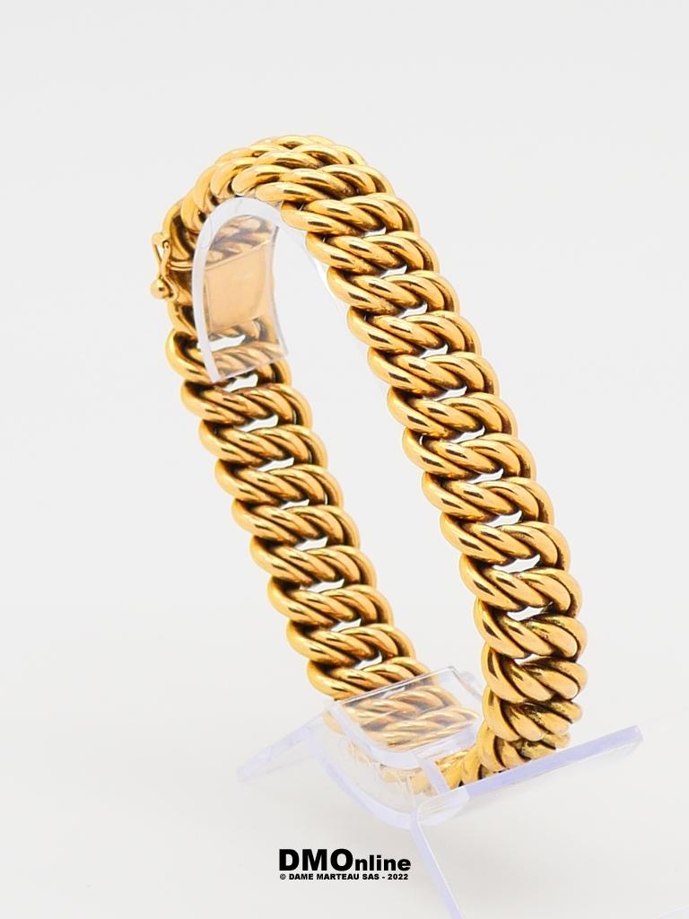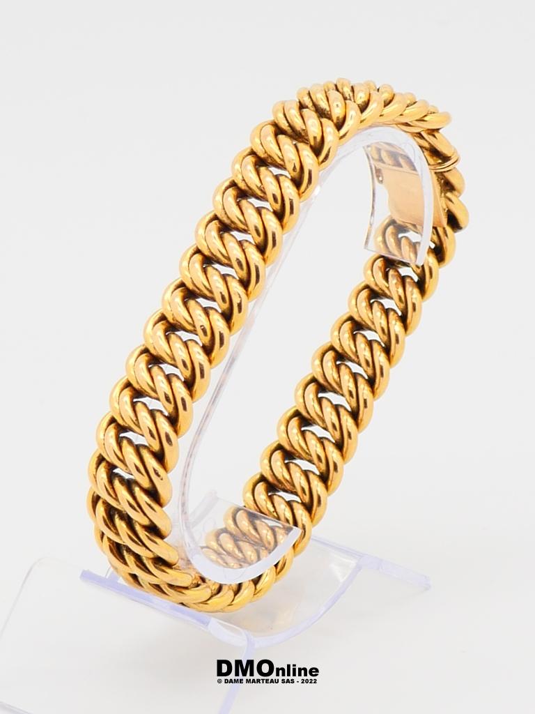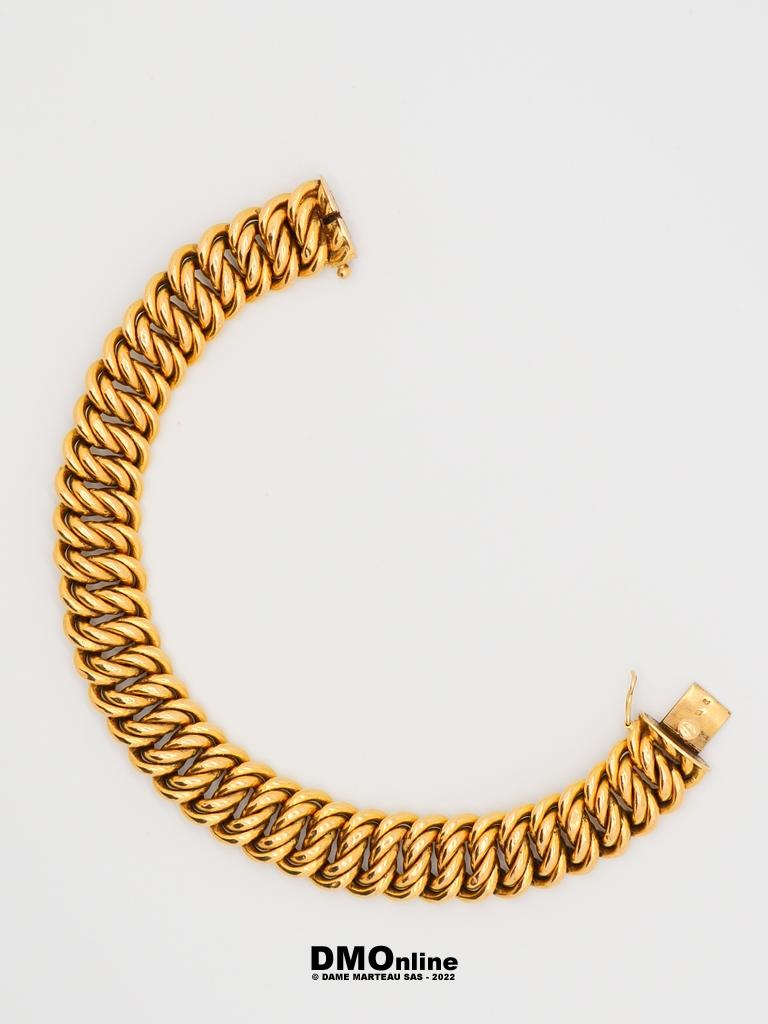 Bracelet gourmette en or jaune 18k. Longueur : 19 cm. Poids : 29,62 gr