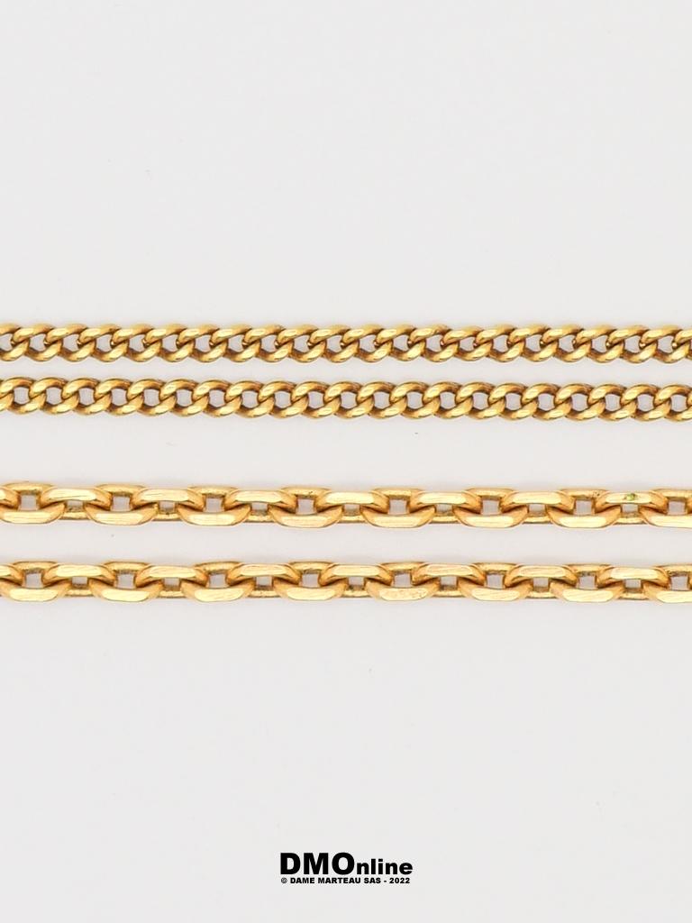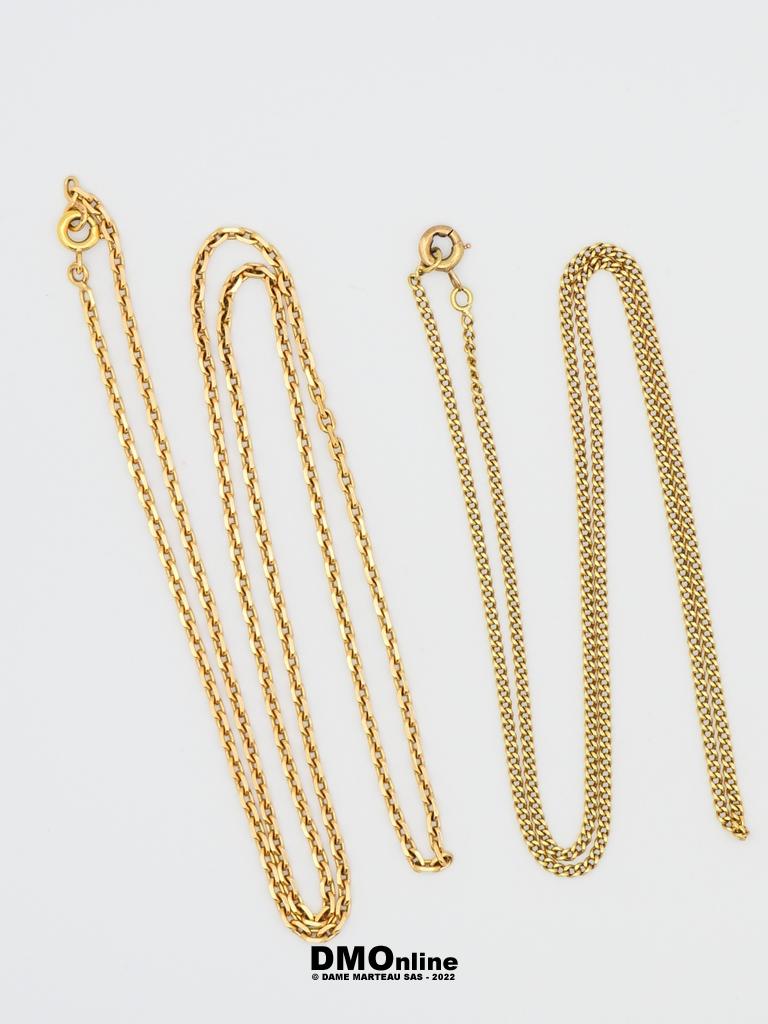 Deux chaines en or jaune 18k. Poids total : 18,53 gr