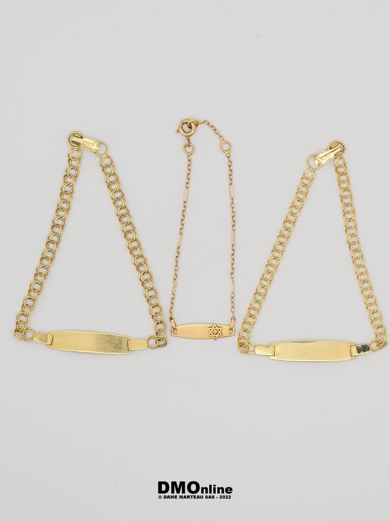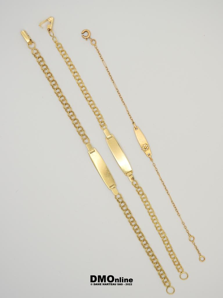 Trois gourmettes en or jaune 18k. Poids total : 8,66 gr