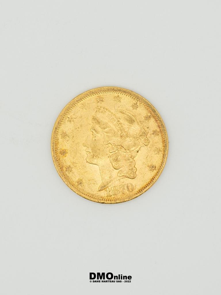 Pièce Or de 20 Dollars « Liberty Head – Double Eagle » de 1870.