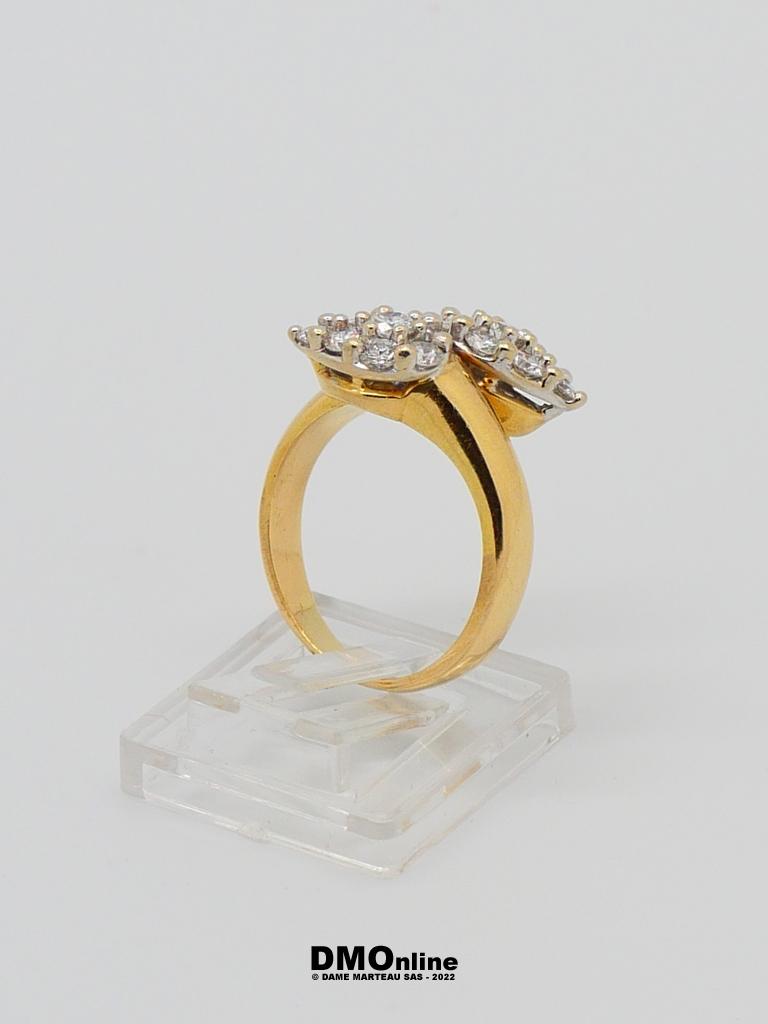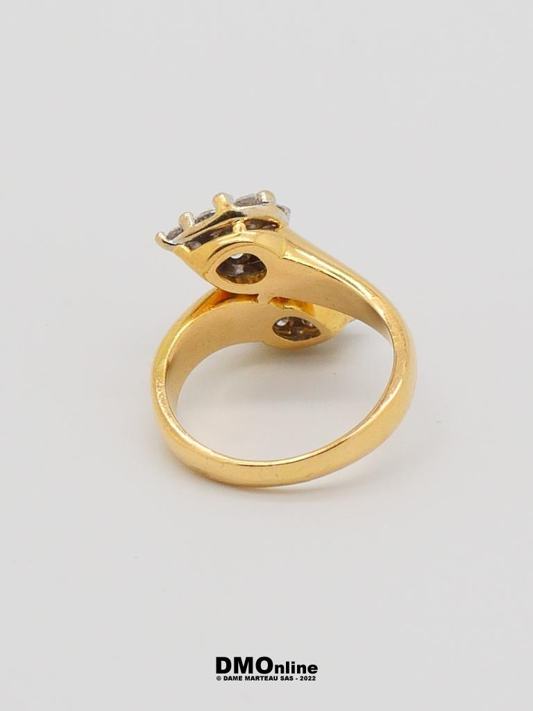 Bague Toi & Moi en or jaune 18k ornée de gouttes présentant huit diamants. TDD : 55. Poids : 9,43 gr