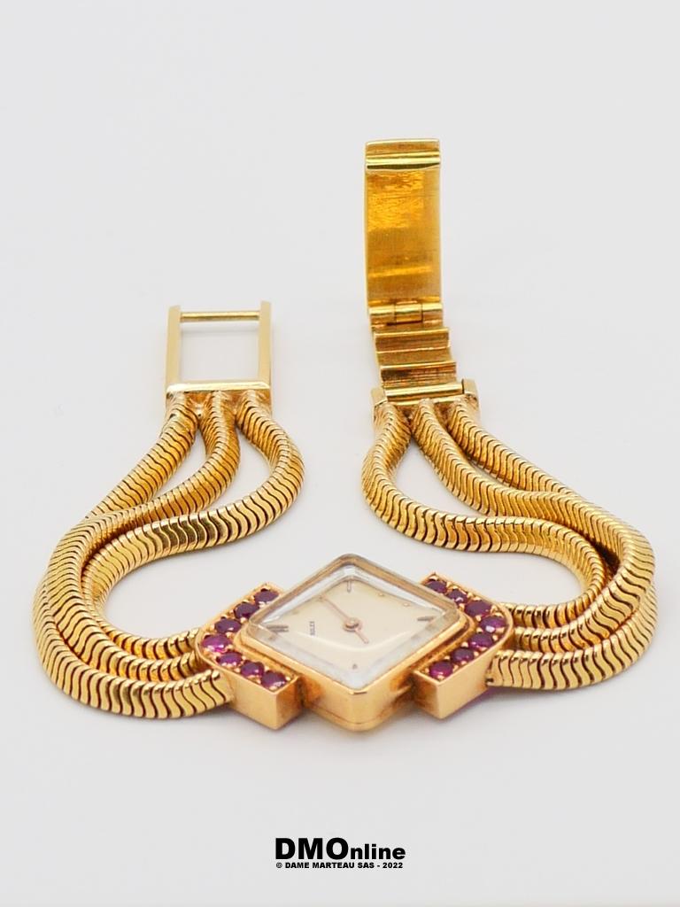 – Titre : Montre bracelet de dame en or orné de saphirs