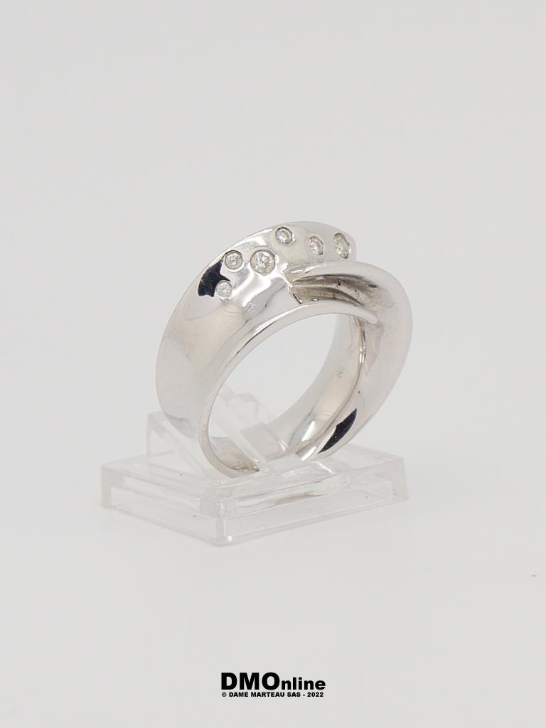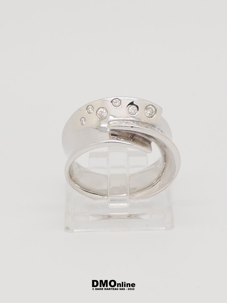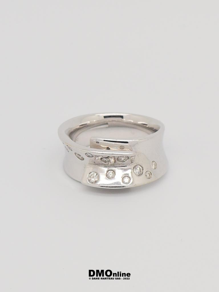 Bague moderne en or gris 18k sertie de 12 brillants en constellation totalisant environ 0,35 carat. Poids : 14,49 gr. TDD : 54
