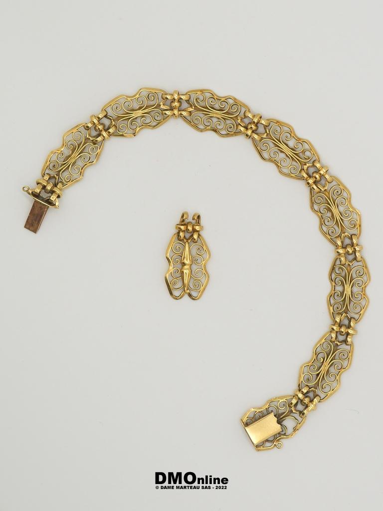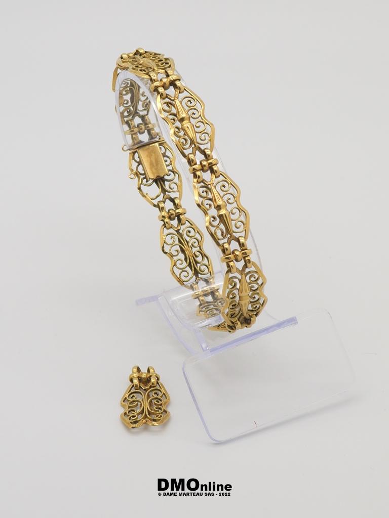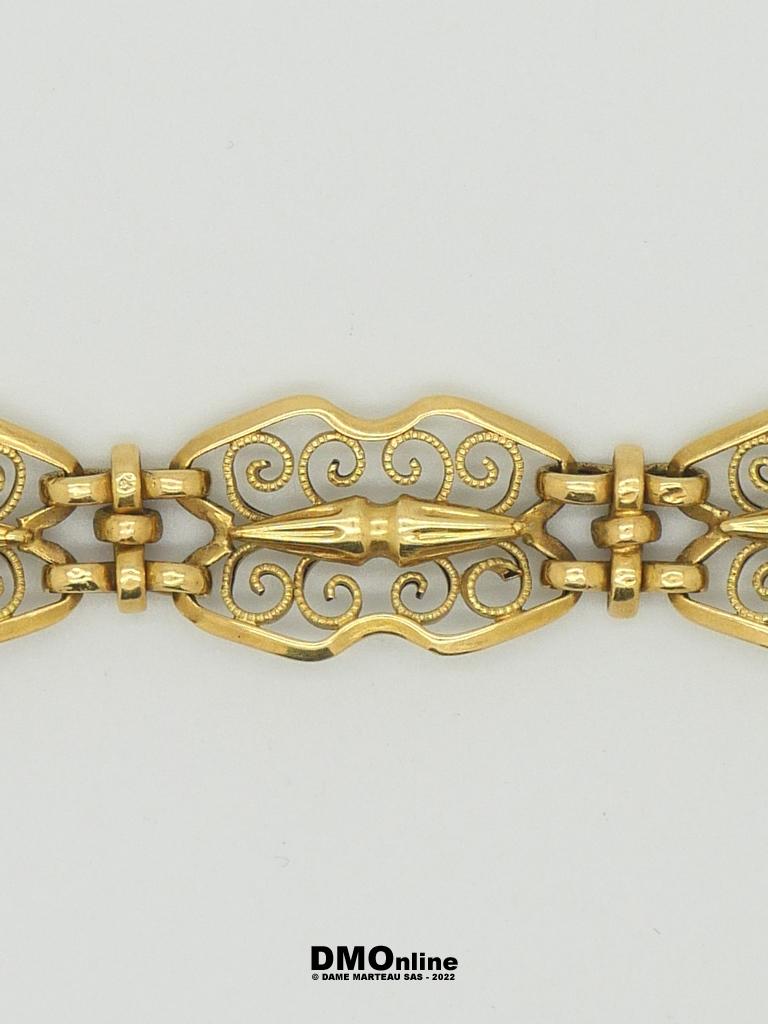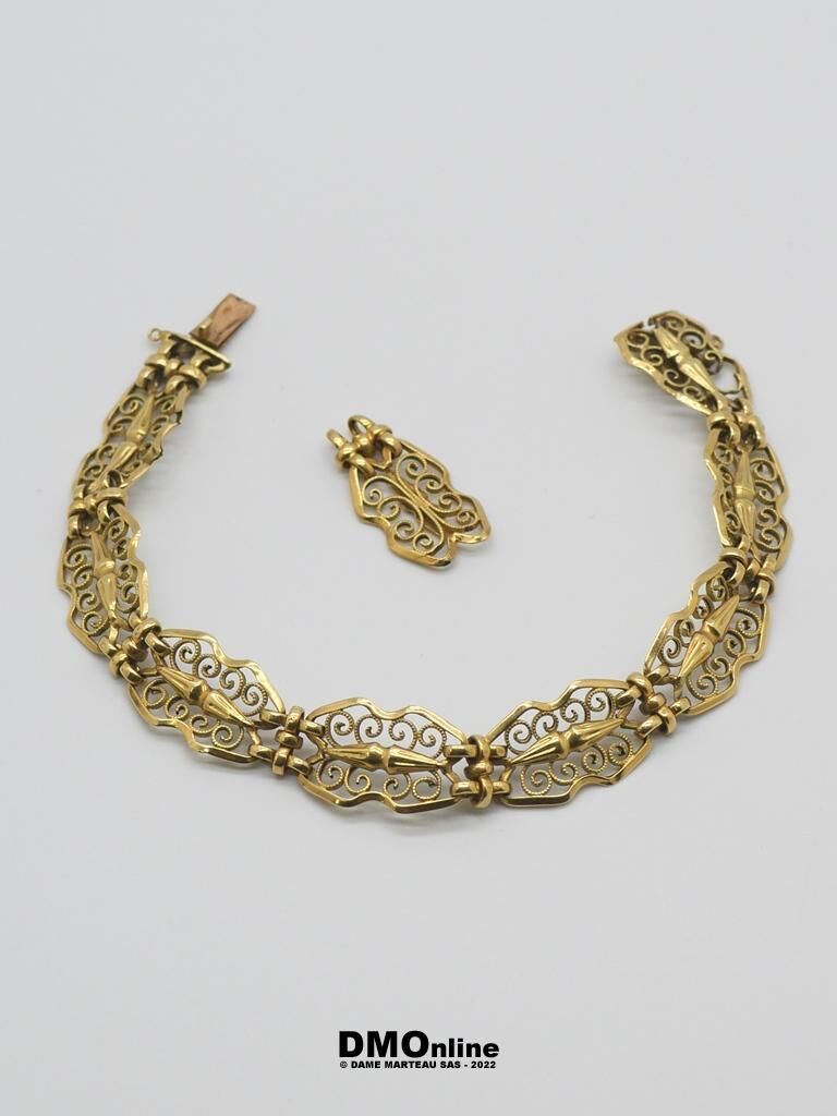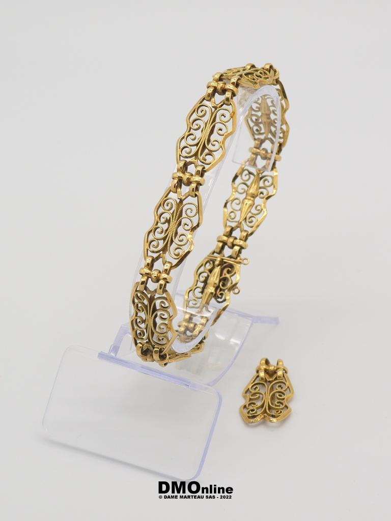 Bracelet en or jaune 18 k à maille filigrané. Un maillon séparé. Poids : 10,20 gr