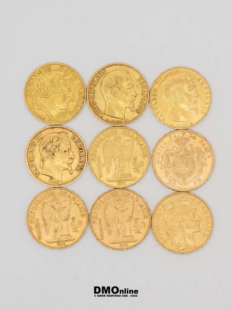 Lot 36 – Neuf pièces en or