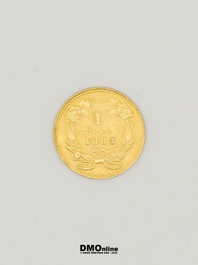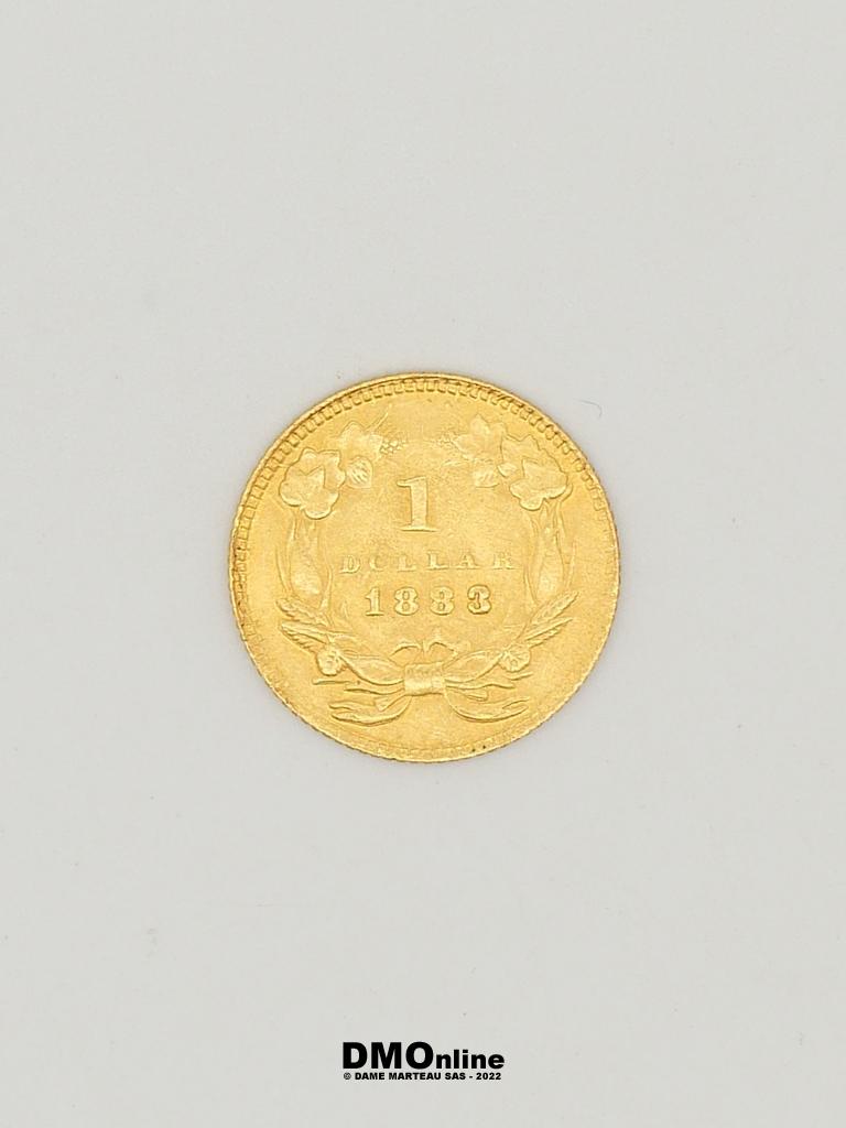 Pièce Or 900‰ de 1 dollar datant de 1883. Poids : 1,65 gr