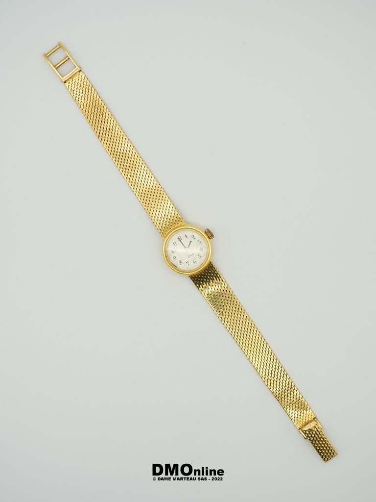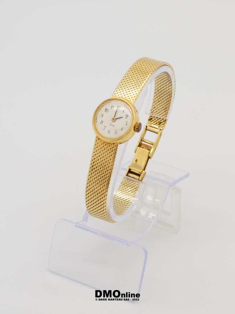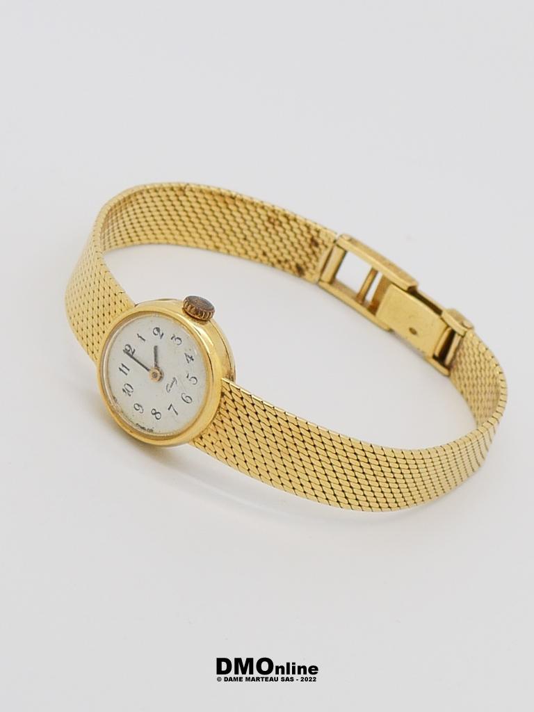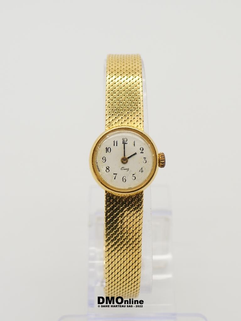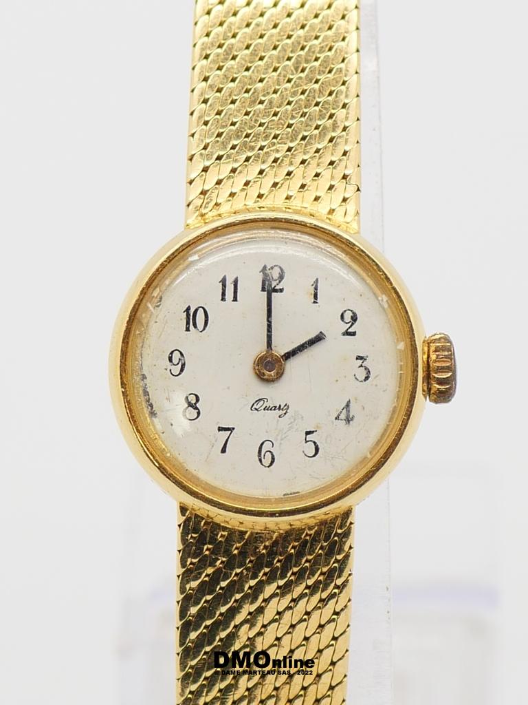 Petite montre bracelet de dame en or en l’état, remontoir en métal. Défaut de fonctionnement. Poids brut : 27,43 gr
