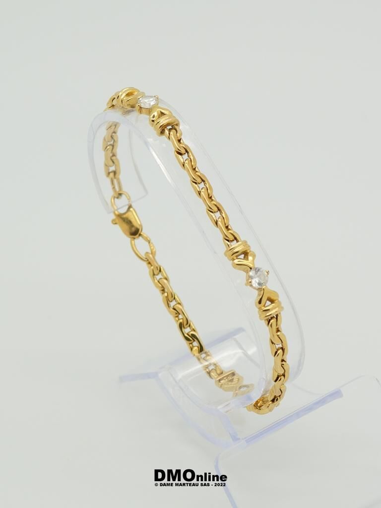 Bracelet en or jaune 18k orné de pierres blanches. Poids : 7,71 gr