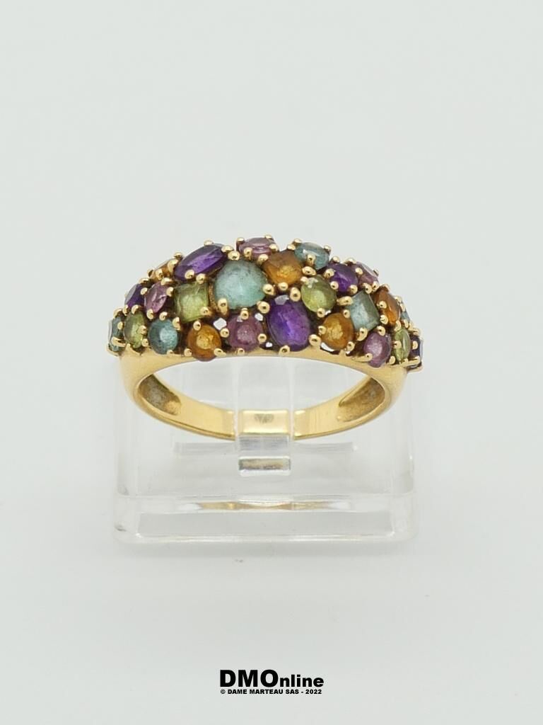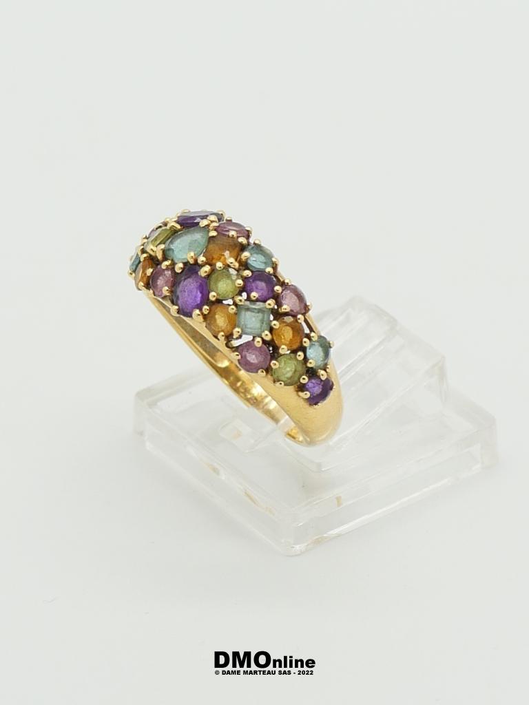 Bague en or jaune 18k tutti fruti ornée de pierres de couleur. TDD : 53. Poids : 3,50 gr