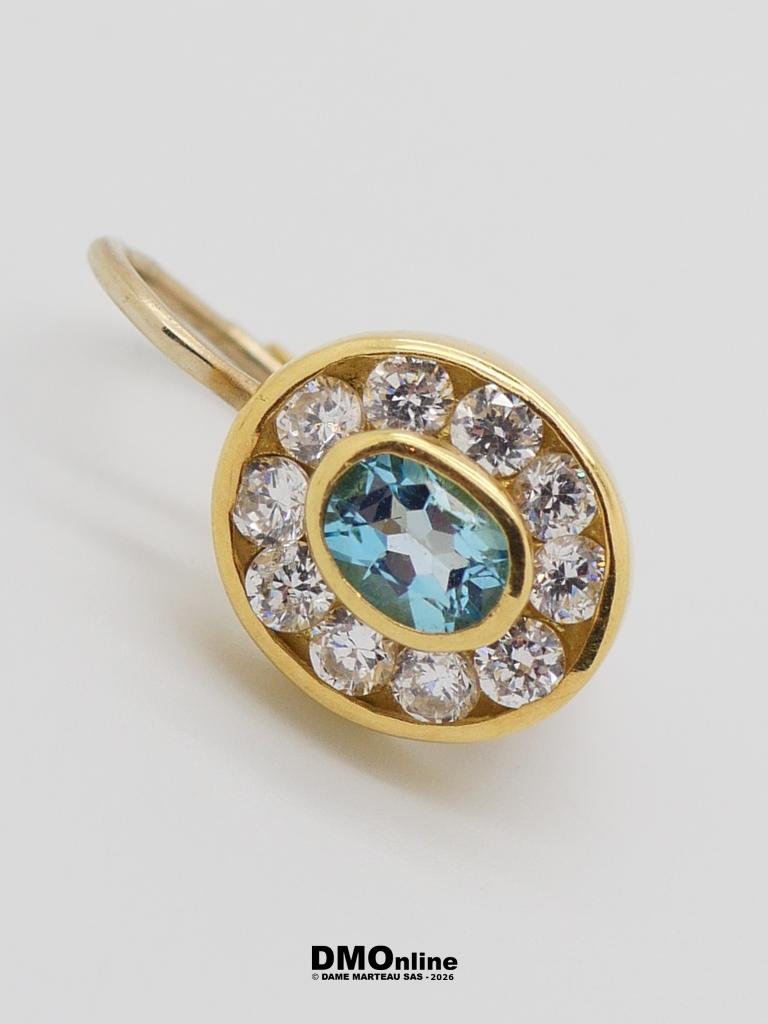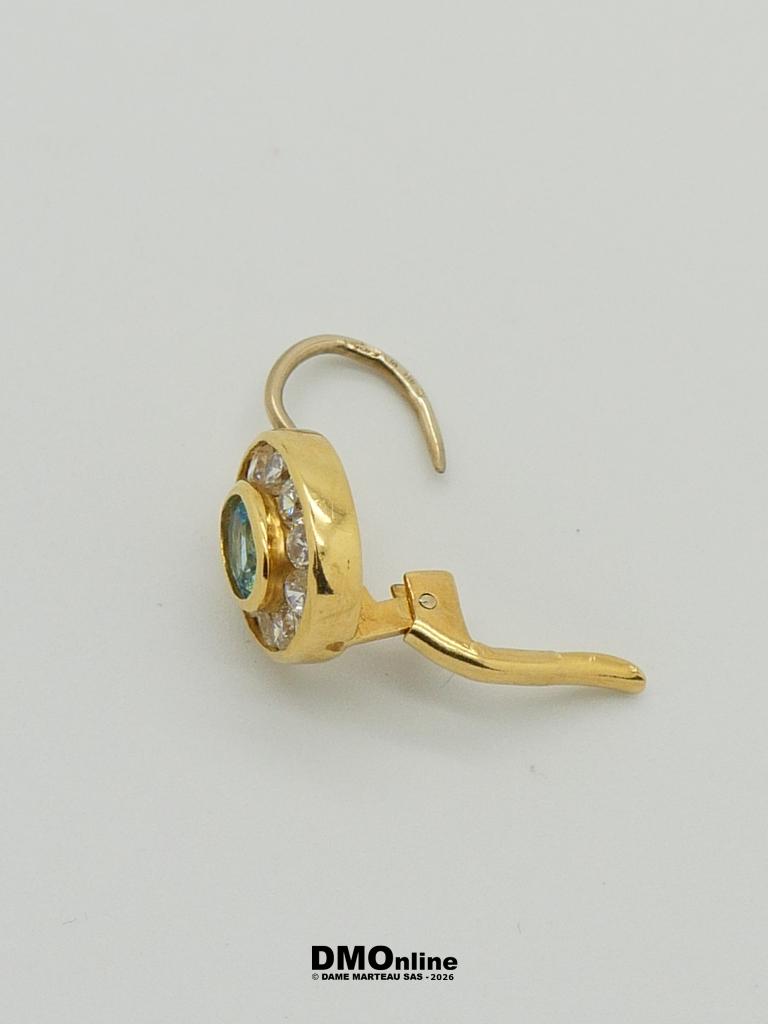 – Titre : Dormeuses en or ornées d’aigue-marine et de pierres
