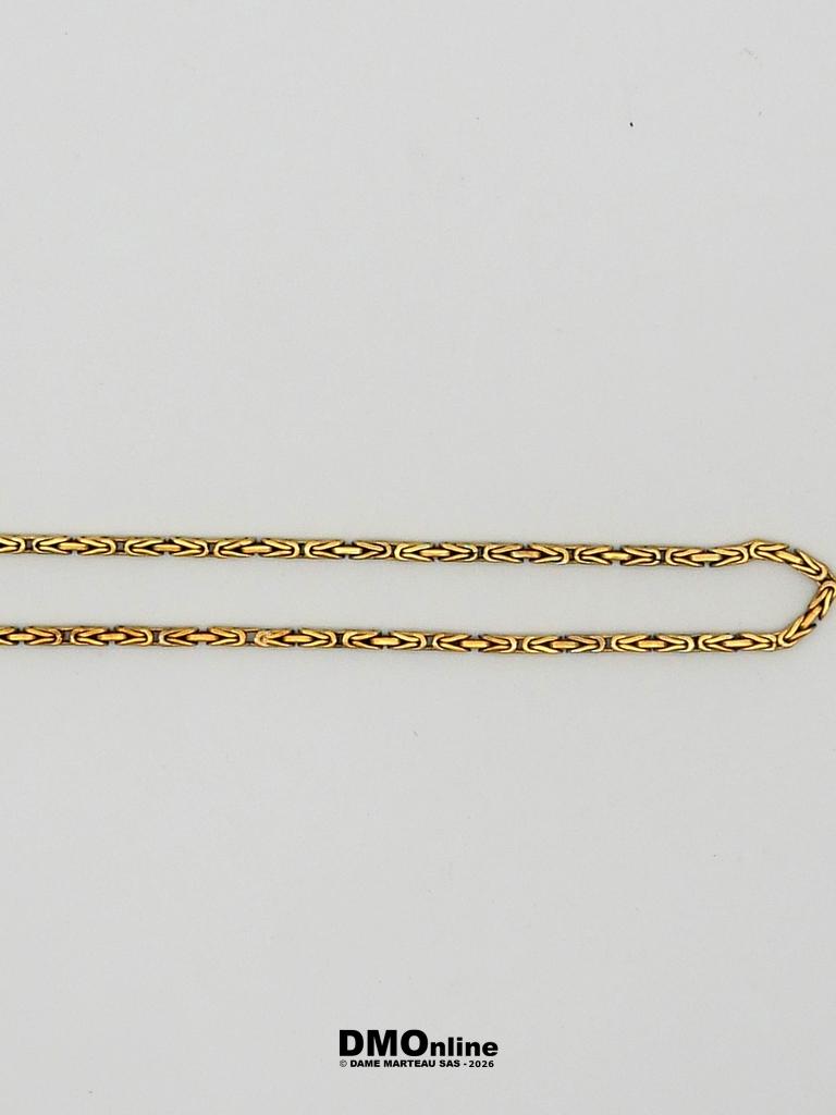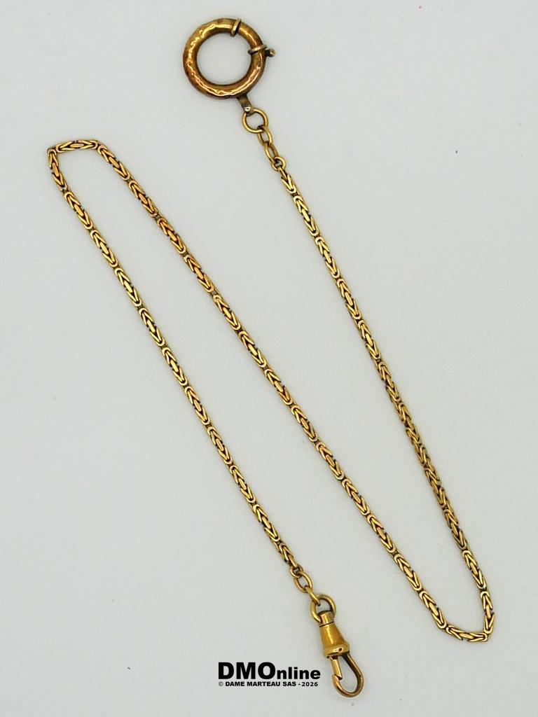 Courte chaine giletière en or jaune 18k. Longueur : 36 cm. Poids : 10,70 gr