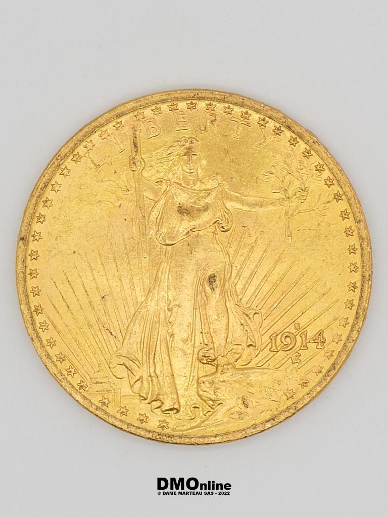 Une pièce de 20 dollars Or 900‰ « Saint-Gaudens – Double Eagle » de 1914