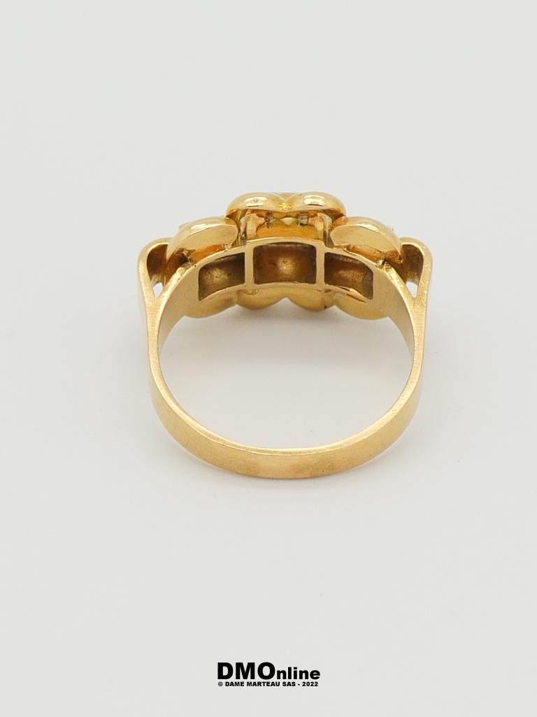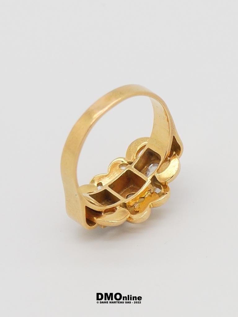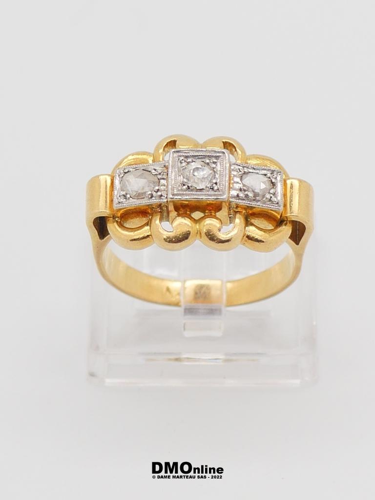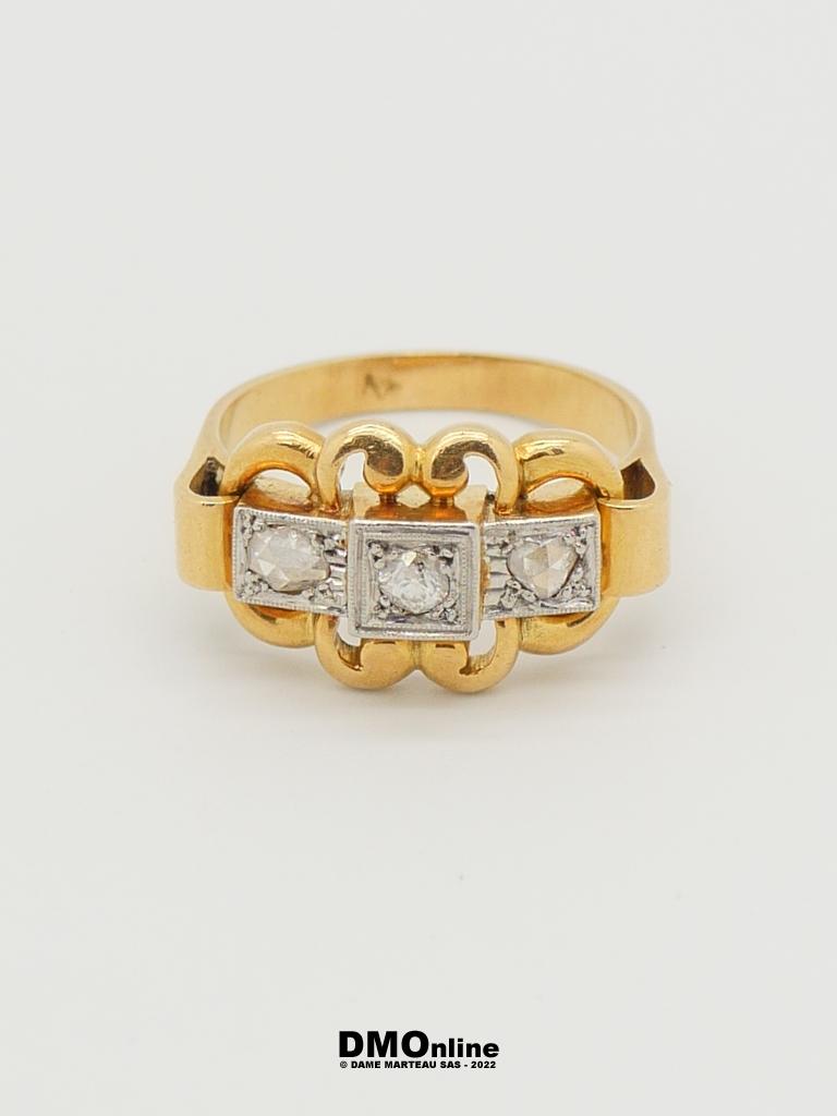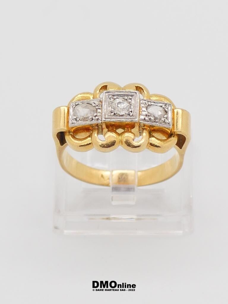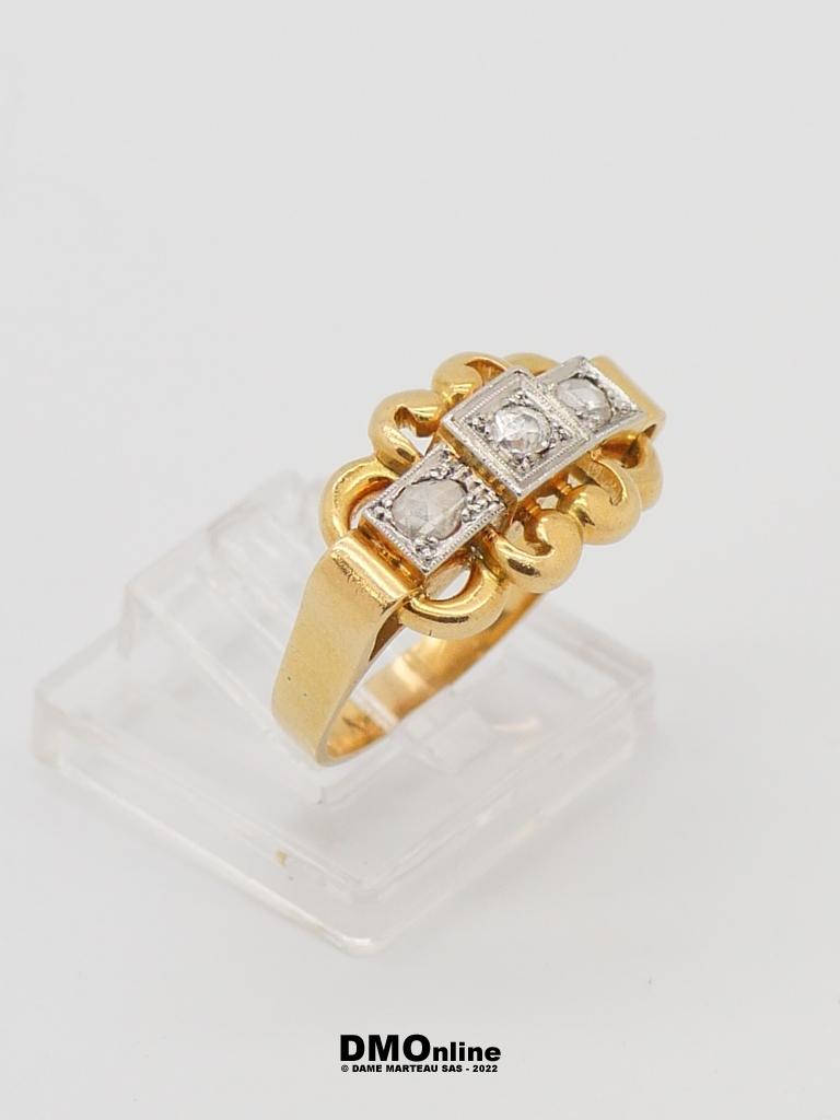 Bague ancienne en or jaune ornée de trois roses. TDD : 56. Poids brut : 6,03 gr