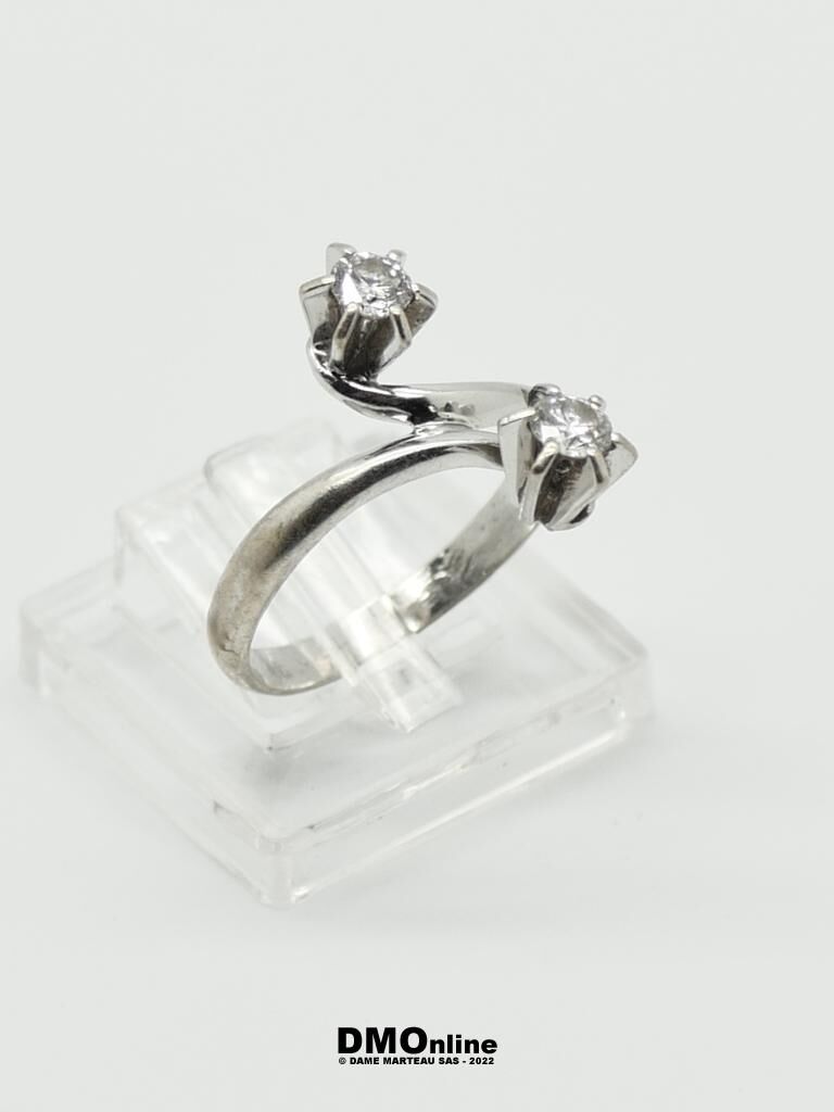 Bague Toi et Moi, années 60, en or gris 18k, sertie de deux diamants totalisant environ 0,30 carats. TDD : 53. Poids total brut : 3,19 g.